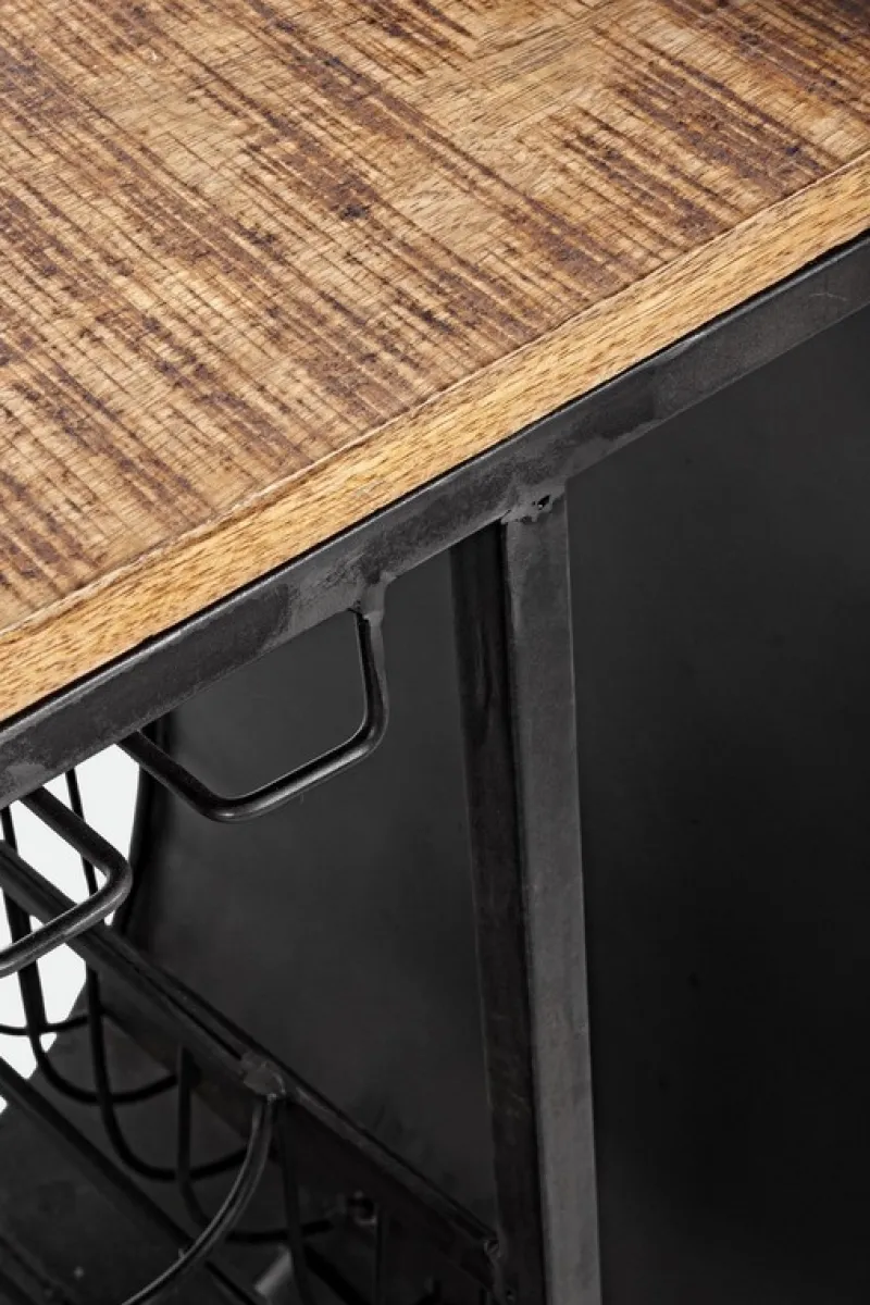 STRUTTURA IN ACCIAIO COMPRENSIVA DI RUOTE. PIANO IN LEGNO DI MANGO. COMPRENSIVO DI PORTABOTTIGLIE E PORTABICCHIERI. TRATTANDOSI DI PRODUZIONE ARTIGIANALE OGNI MODELLO PUO’ VARIARE IN PICCOLI PARTICOLARI COSTRUTTIVI. RUOTA ANTERIORE E MANUBRIO DA ASSEMBLARE. EVENTUALI PICCOLE CREPE O SPACCATURE SONO DA RITENERSI CARATTERISTICHE PROPRIE AL NATURALE