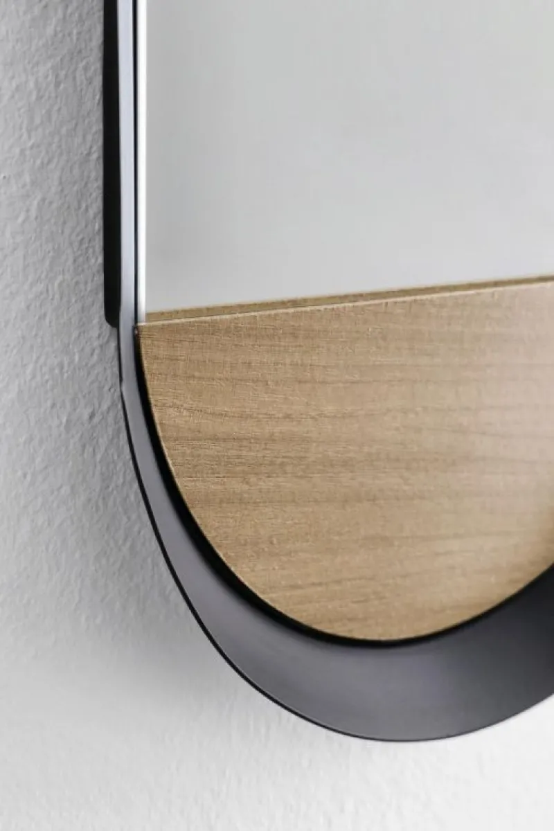 ACCIAIO VERNICIATO A POLVERE EPOSSIDICA E VETRO. INSERTO IN MDF IMPIALLACCIATO PVC. MISURA SPECCHIO: 89.5×25.5