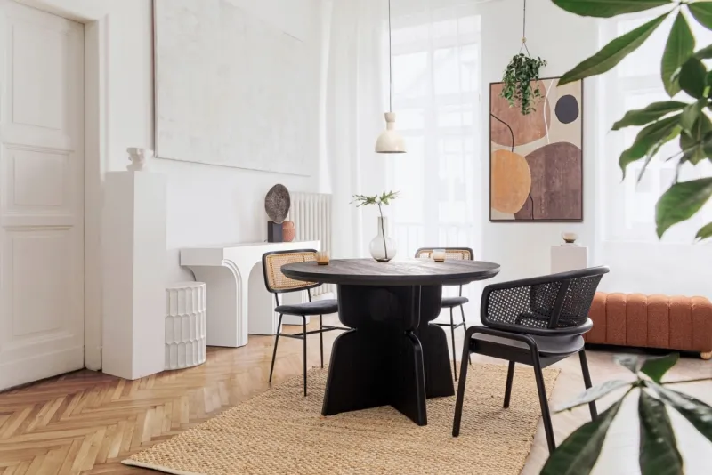 STRUTTURA IN MDF E COMPENSATO. RIVESTIMENTO IN POLIESTERE EFFETTO BOUCLE’. GAMBE IN RUBBER WOOD.