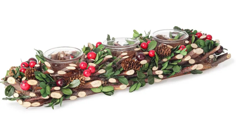 RAMETTI DI BETULLA, FOGLIE DI BOSSO, PIGNE, BACCHE IN POLISTIROLO