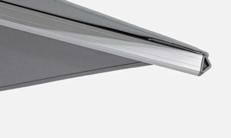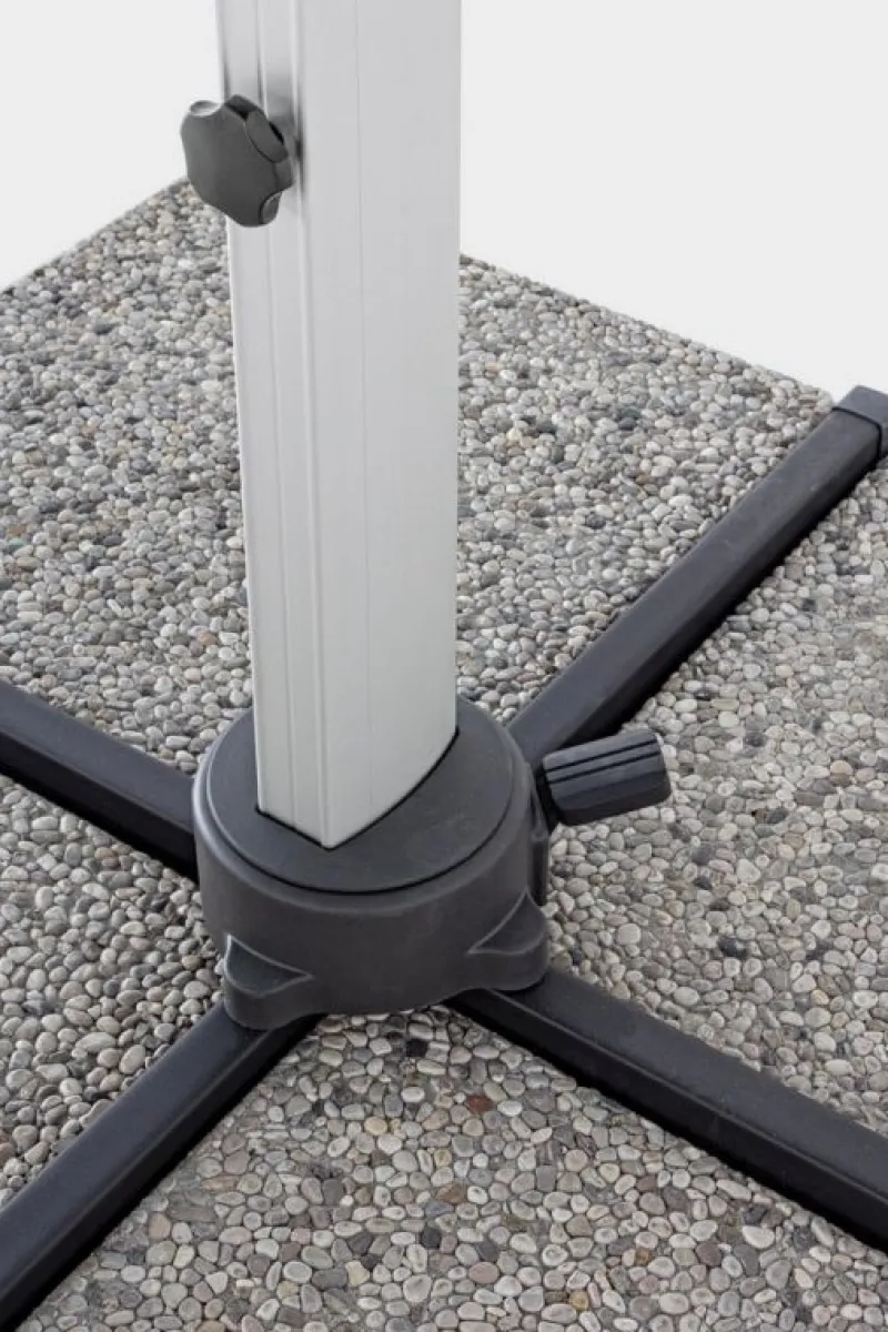 STRUTTURA IN ALLUMINIO ANODIZZATO PALO 93X57MM. 8 STECCHE 28X18MM. TELO GRIGIO SCURO IN POLIESTERE 250GR/M2 CON RIVESTIMENTO IN PA (POLIAMMIDE) CON CAMINO ANTIVENTO. BASE A CROCE IN ACCIAIO. PALO GIREVOLE 360° CON PEDALINA. INCLINAZIONE VERTICALE CON IMPUGNATURA A 5 POSIZIONI. COMPRENSIVO DI COPRIOMBRELLONE. MARMETTE NON INCLUSE. PREDISPOSIZIONE LAMPADA LED