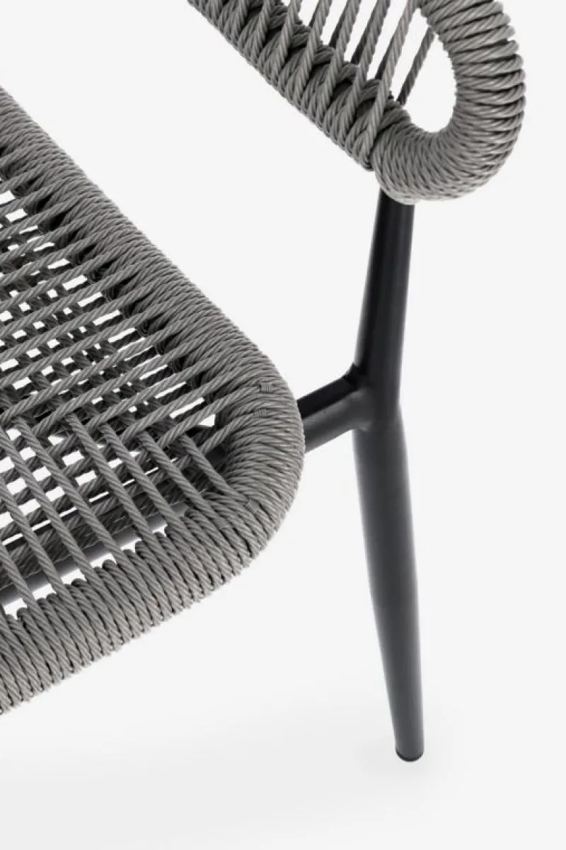 STRUTTURA IN ALLUMINIO, VERNICIATA A POLVERE (POLIESTERE), INTRECCIO IN FIBRA SINTETICA (TWISTED). IMPILABILE. IMBALLO SENZA CARTONE.