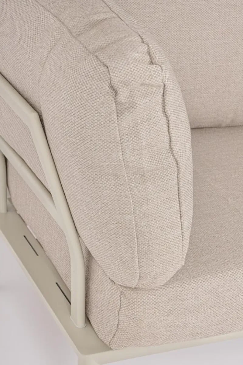 STRUTTURA IN ALLUMINIO VERNICIATA A POLVERE (POLIESTERE). CUSCINI SFODERABILI CON TESSUTO IDROREPELLENTE OLEFIN (100% POLIPROPILENE). SCHIENALI DA INSERIRE.