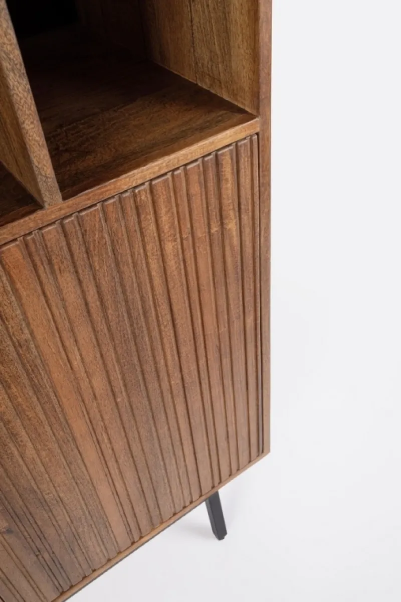 STRUTTURA IN LEGNO DI MANGO. FINITURA CON VERNICE A BASE DI NITROCELLULOSA. SCHIENALI IN MDF. VANO PORTA COMPRENSIVO DI MENSOLA. GAMBE IN ACCIAIO VERNICIATO A POLVERE EPOSSIDICA. GAMBE DA ASSEMBLARE.