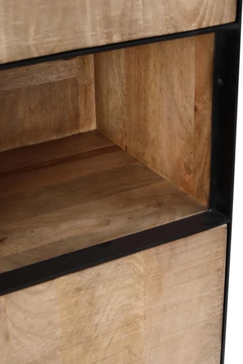 STRUTTURA IN LEGNO DI MANGO, FINITURA FINALE CON VERNICE A BASE D’ACQUA. PROFILO FRONTALE E GAMBE IN ACCIAIO VERNICIATO A POLVERE EPOSSIDICA. ANTE CON CERNIERE CON CHIUSURA AMMORTIZZATA. VANO PORTA COMPRENSIVO DI MENSOLA.