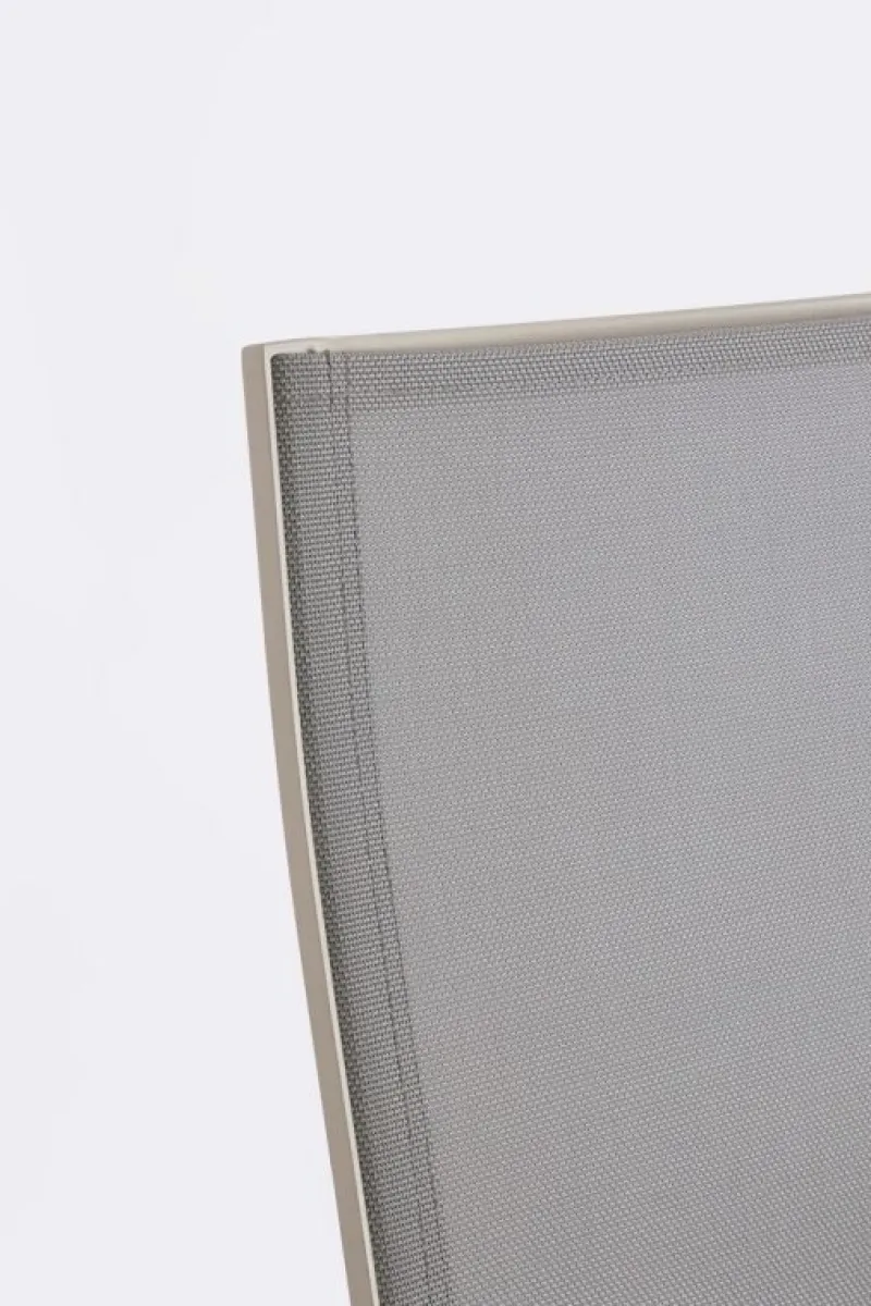 STRUTTURA IN ALLUMINIO VERNICIATA A POLVERE (POLIESTERE). RIVESTIMENTO IN TEXTILENE 1X1. IMPILABILE.
