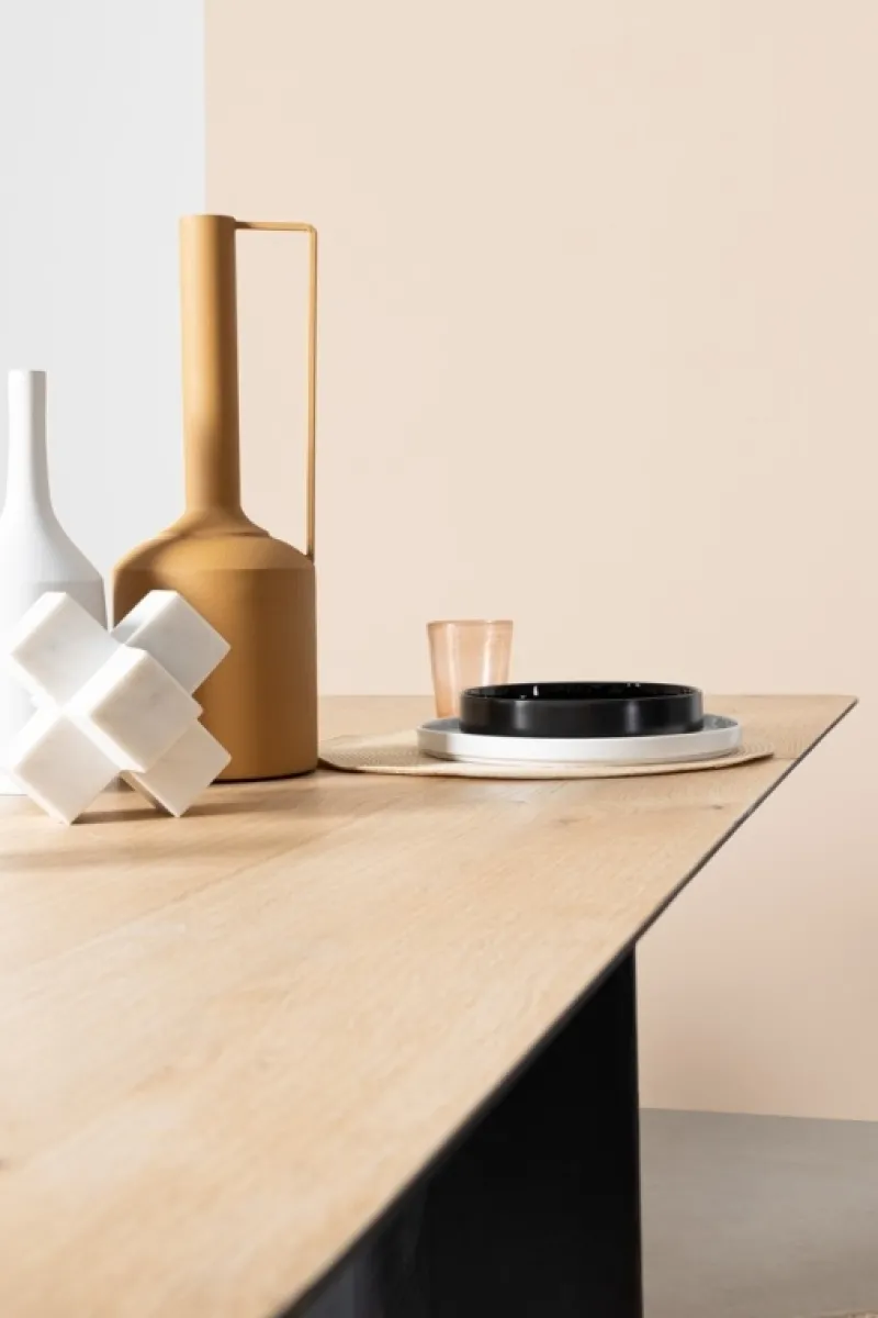 MDF IMPIALLACCIATO ROVERE. PIANO CON FINITURA NATURALE CON VERNICE A BASE D’ACQUA, GAMBE CON FINITURA A BASE DI NITROCELLULOSA. GAMBE DA ASSEMBLARE. ATTENZIONE CODICE IN ABBINAMENTO.
