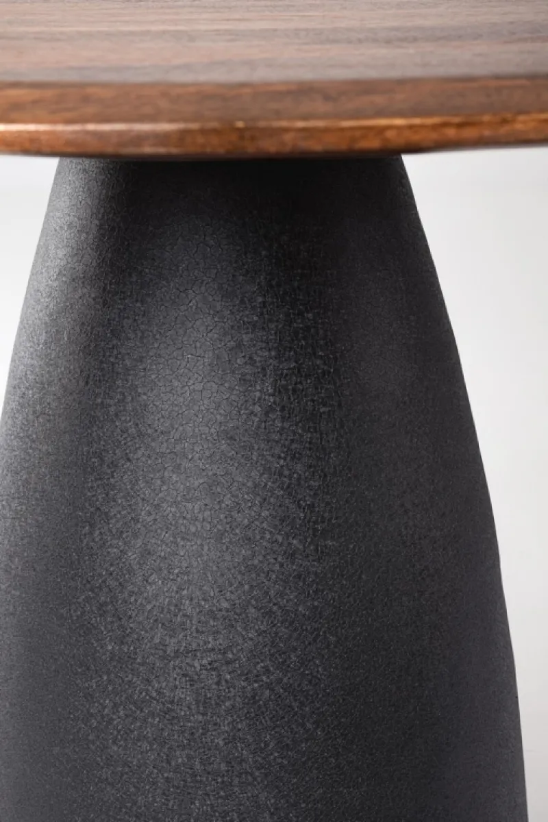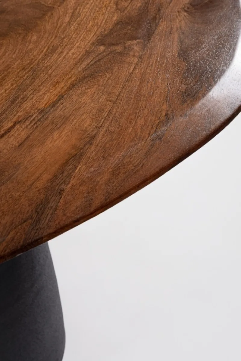TOP IN LEGNO DI MANGO CON FORMA IRREGOLARE,CON VERNICIATURA A BASE D’ACQUA E FINITURA FINALE A BASE DI NITROCELLULOSA. BASE IN ACCIAIO VERNICIATO A POLVERE EPOSSIDICA EFFETTO MATERICO. BASE DA ASSEMBLARE