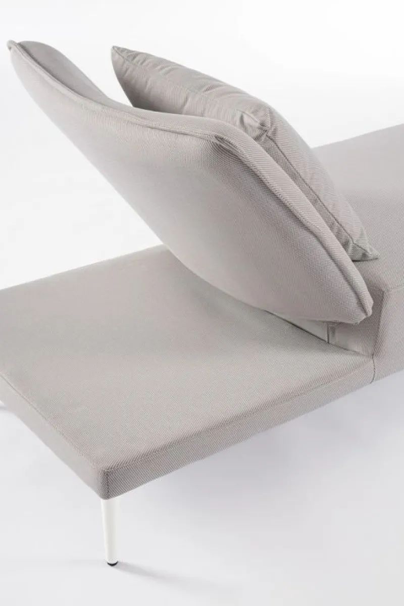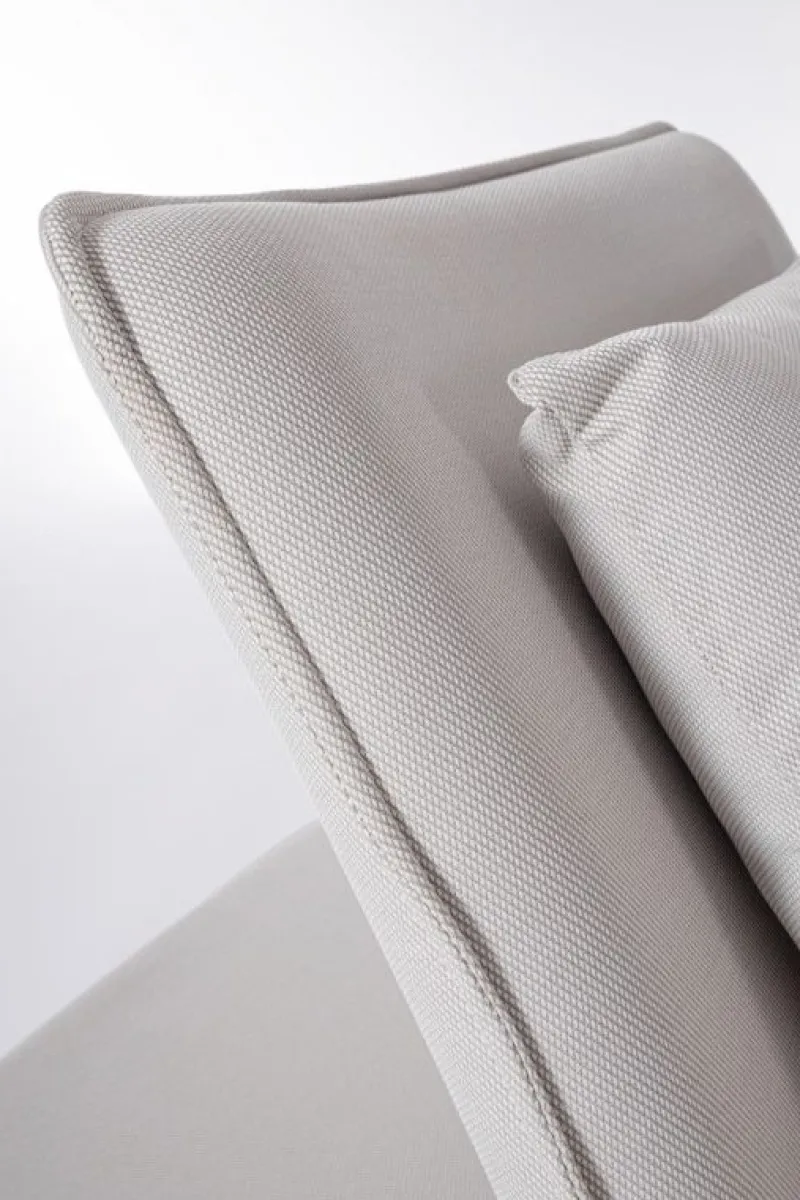STRUTTURA IN ALLUMINIO. SEDUTA E SCHIENALE (RECLINABILE IN LIBERA POSIZIONE) NON SFODERABILI IN TESSUTO PER ESTERNO IN OLEFIN (100% POLIPROPILENE, 285GR/M2), IDROREPELLENTE E RESISTENTE AI RAGGI UV (GRADO 7), IMPERMEABILIZZATO INTERNAMENTE CON RIVESTIMENTO IN TESSUTO (POLIURETANO). IMBOTTITURA IN SCHIUMA POLIURETANICA, DENSITA’ 40KG/M3. INCLUSO DI