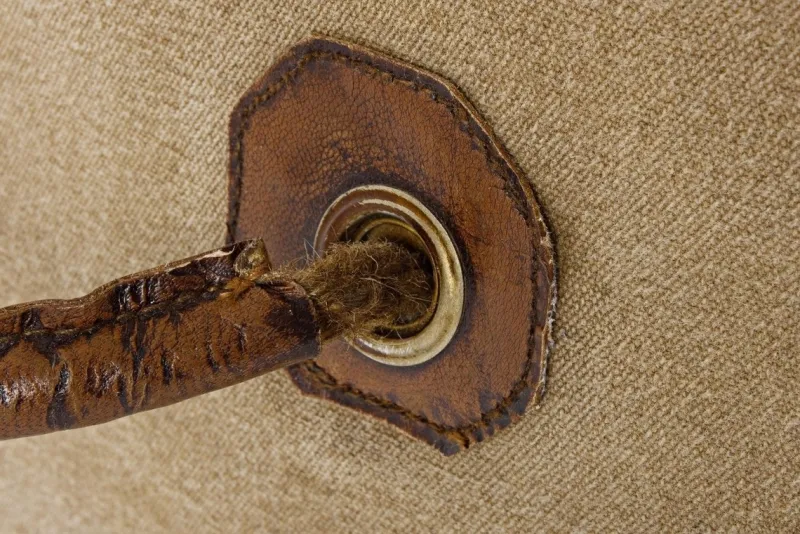 IMBOTTITURA IN COTONE, RIVESTIMENTO IN TELA RICICLATA E VERA PELLE.