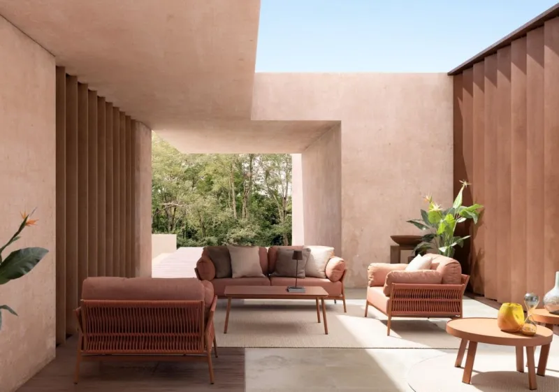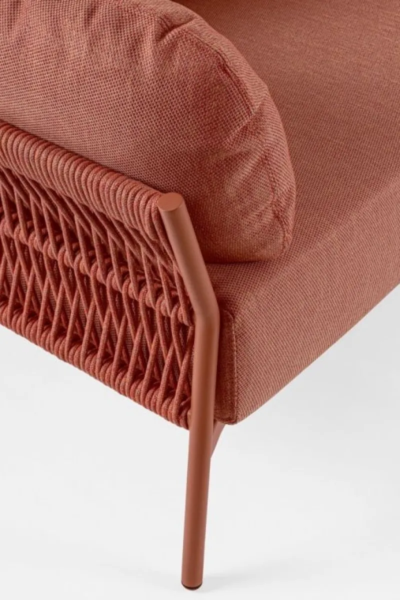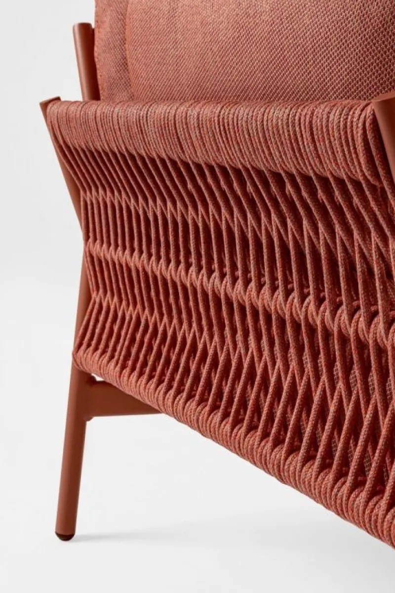 STRUTTURA IN ALLUMINIO VERNICIATO A POLVERE (POLIESTERE). INTRECCIO IN CORDA OLEFIN (100% POLIPROPILENE). CUSCINI SEDUTA E SCHIENALE SFODERABILI IN TESSUTO IDROREPELLENTE OLEFIN (100% POLIPROPILENE).