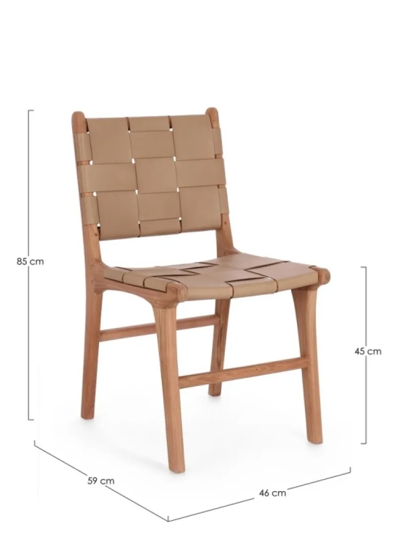 LEGNO TEAK, FINITURA CON VERNICE A BASE D’ACQUA. SEDUTA E SCHIENALE RIVESTITI IN VERA PELLE (PIENO FIORE).