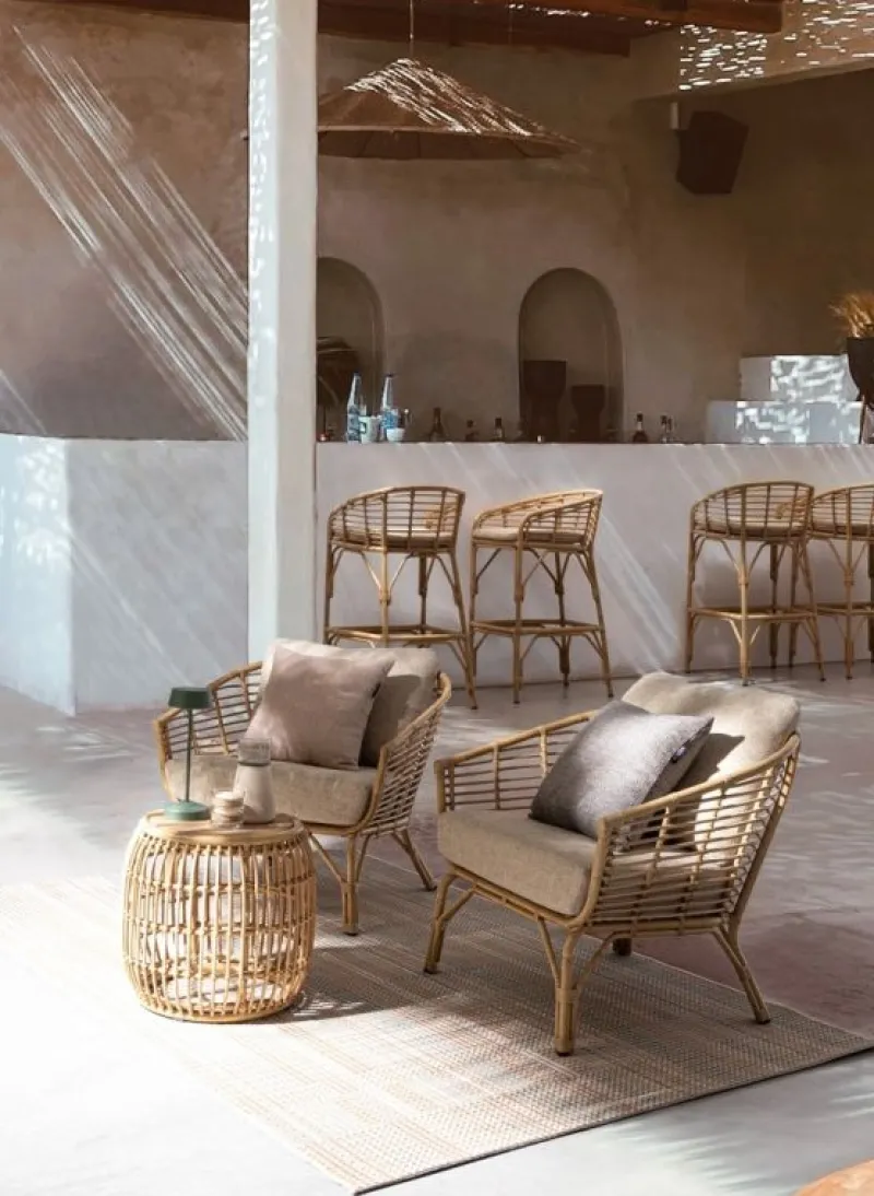 STRUTTURA IN ALLUMINIO VERNICIATO A POLVERE (POLIESTERE) CON EFFETTO RATTAN, INTRECCIO IN FIBRA SINTETICA (TONDO 10MM). PIANO IN TEAK – SVLK (LEGNO CERTIFICATO PROVENIENTE DA FORESTE SOSTENIBILI) CON FINITURA NATURALE. IMBALLO SENZA CARTONE.