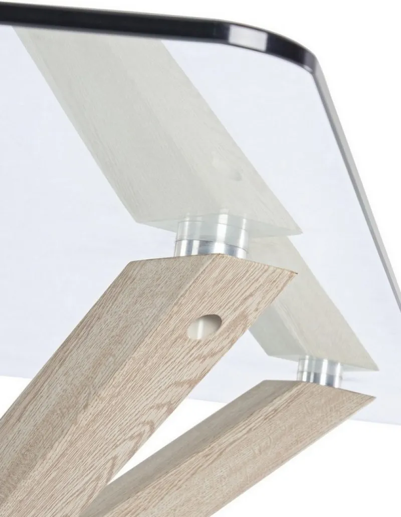 GAMBE IN ACCIAIO FINITURA EFFETTO LEGNO NATURALE. PIANO IN VETRO TEMPERATO SPESSORE 10MM. GAMBE DA ASSEMBLARE