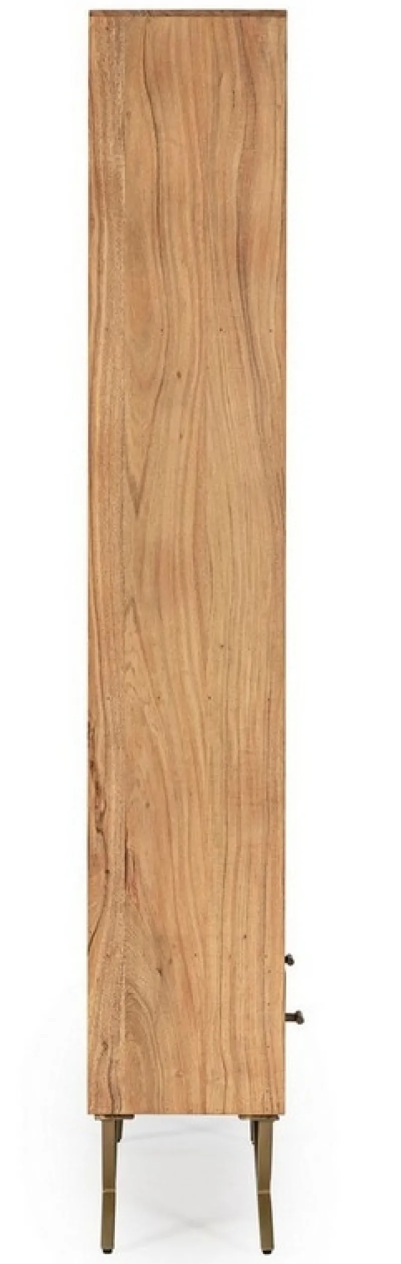 STRUTTURA IN LEGNO DI ACACIA, SCHIENALI ED INTERNO CASSETTI IN COMPENSATO, FINITURA A BASE DI VERNICE POLIURETANICA. GAMBE IN ACCIAIO VERNICIATO A POLVERE EPOSSIDICA. GAMBE DA ASSEMBLARE.