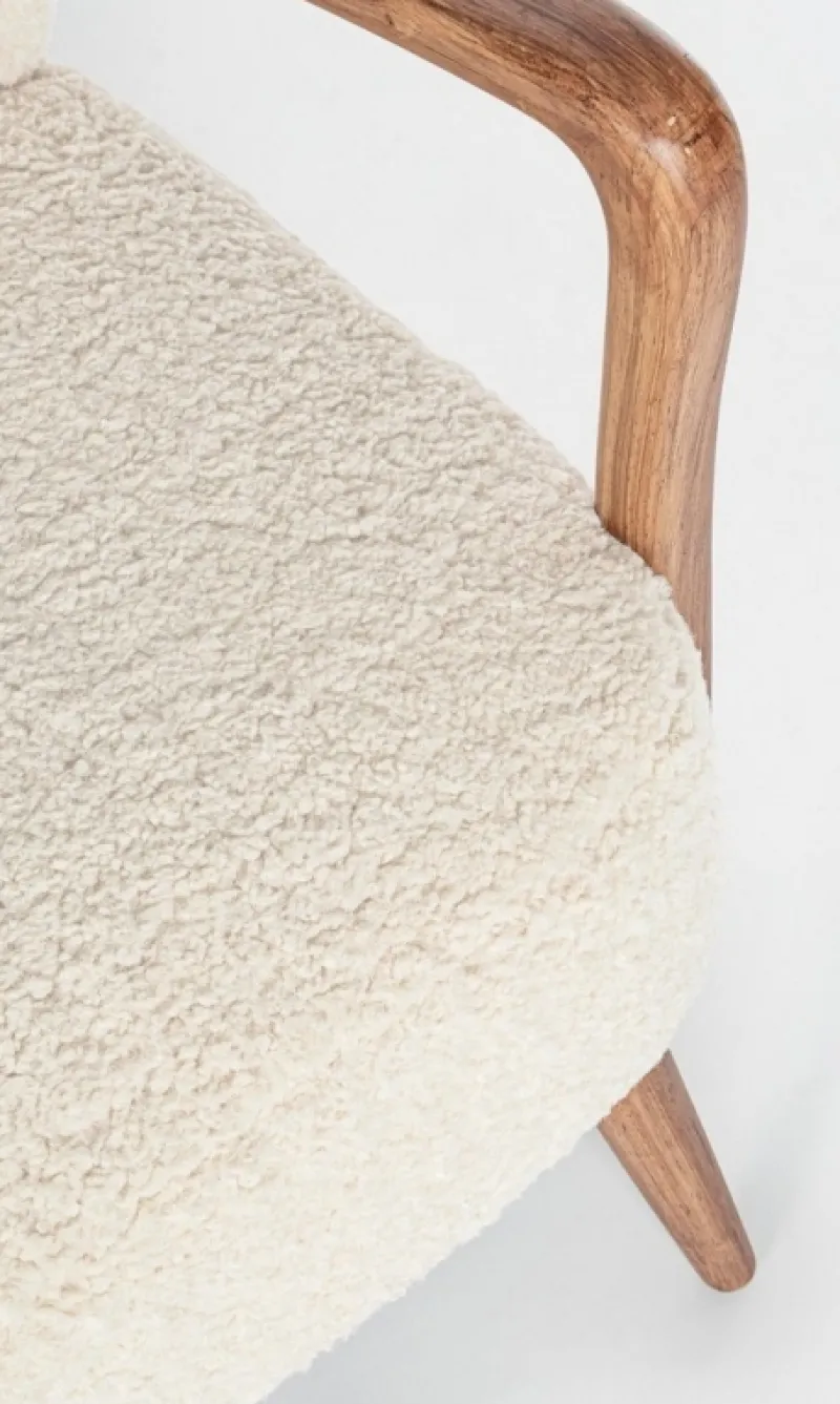 STRUTTURA IN LEGNO DI PINO E COMPENSATO. GAMBE E BRACCIOLI IN RUBBERWOOD. RIVESTIMENTO IN POLIESTERE EFFETTO LANA. DENSITA’ IMBOTTITURA IN SCHIUMA POLIURETANICA 24 KG/M3. NON SFODERABILE. GAMBE DA ASSEMBLARE.