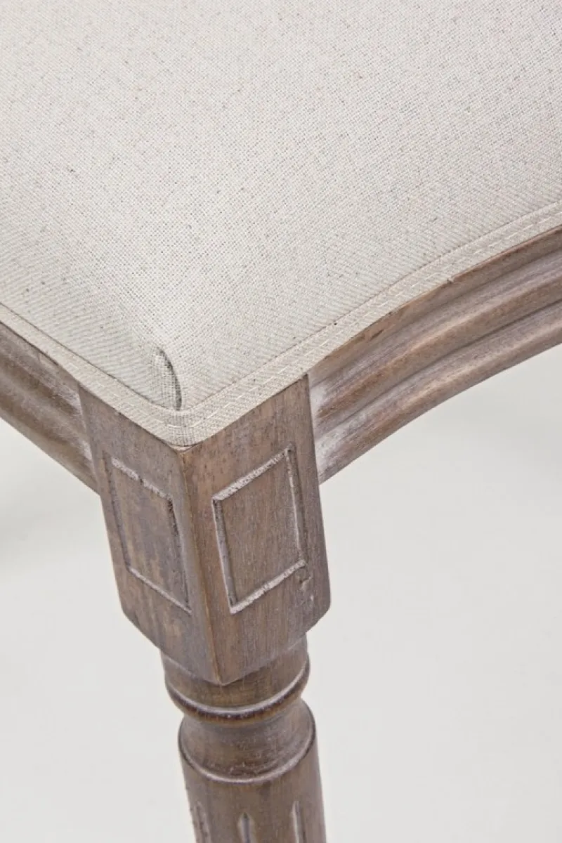 STRUTTURA IN LEGNO DI BETULLA. SEDUTA E SCHIENALE RIVESTITI IN TESSUTO (40% POLIESTERE, 30% COTONE E 30% LINO).