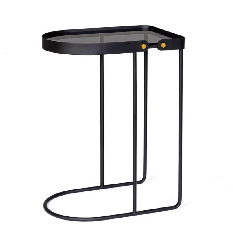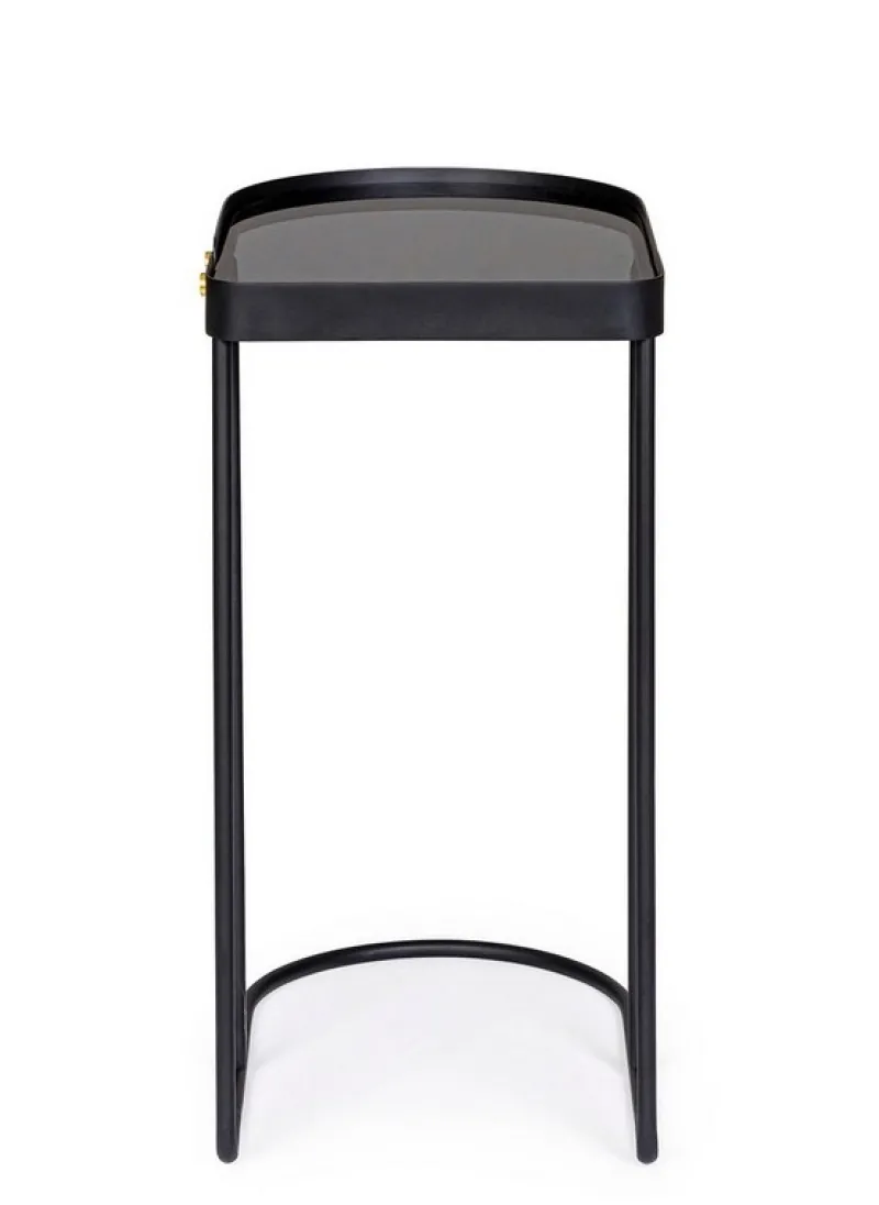 STRUTTURA IN ACCIAIO, VERNICIATA A POLVERE EPOSSIDICA. PIANO IN VETRO TEMPERATO.