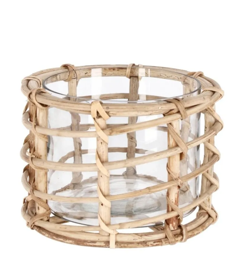VETRO E RATTAN DA VERGA. PRODOTTO FATTO A MANO. EVENTUALI VARIAZIONI DI COLORE, TONALITÀ O IMPERFEZIONI SONO DA CONSIDERARSI UNA CARATTERISTICA DI UNICITÀ. IL MATERIALE NATURALE ESTERNO NON DEVE ESSERE POSTO A CONTATTO CON L’ACQUA. SOLO PER USO INTERNO.