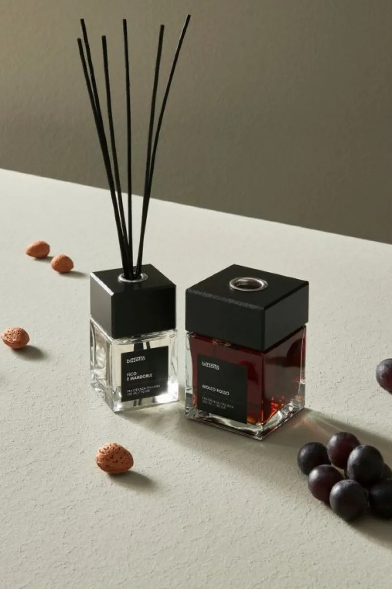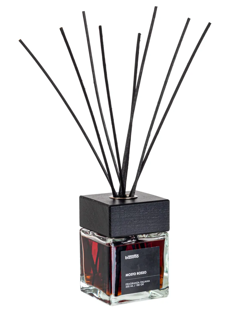 MOSTO ROSSO FRAGRANZA PER AMBIENTI CON 6 BASTONCINI NERI (H 30 CM). PROFUMO APPARTENENTE ALLA FAMIGLIA DEI FRUTTATI. BOTTIGLIA IN VETRO, FORMATO 200 ML. CONTROTAPPO IN PLASTICA E TAPPO DECORATIVO IN LEGNO NERO. AREA DI COPERTURA 40 MQ. FRAGRANZA INTENSA E FRUTTATA CON IL CARATTERE DOLCE DELL’UVA. FRAGRANZA CONSIGLIATA PER LA CUCINA ED IL SOGGIORNO. LIQUIDO E VAPORI
