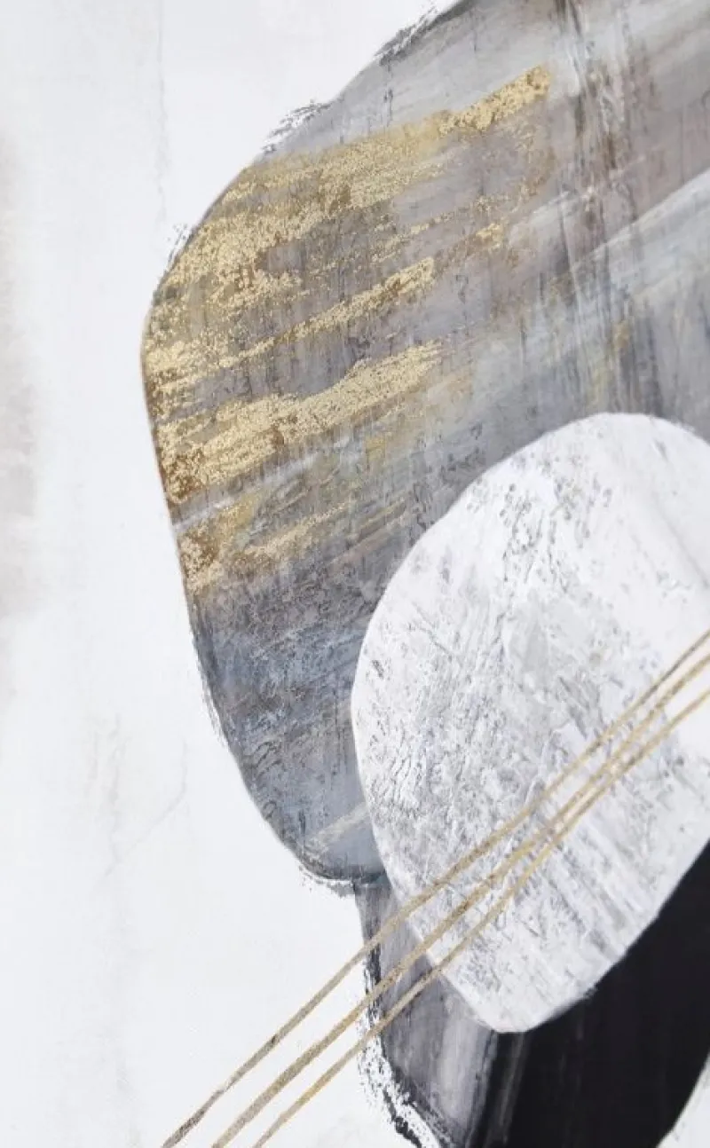 STAMPA SU TELA CON APPLICAZIONI FOGLI DORATI. STRUTTURA IN LEGNO DI PINO. CORNICE IN PLASTICA.