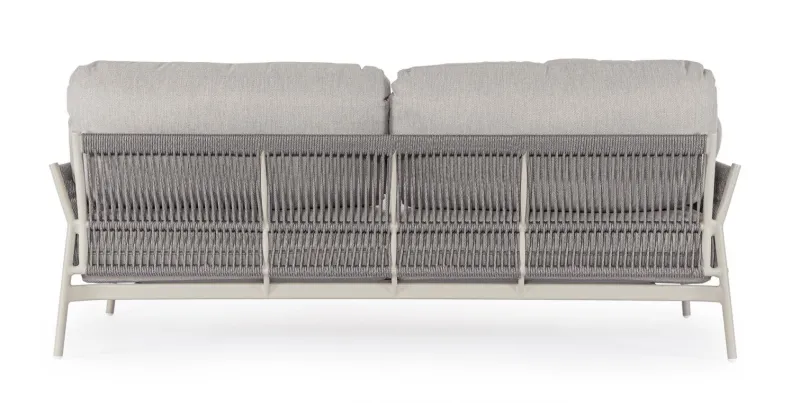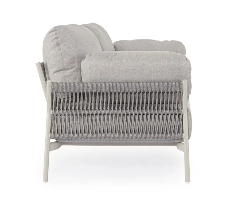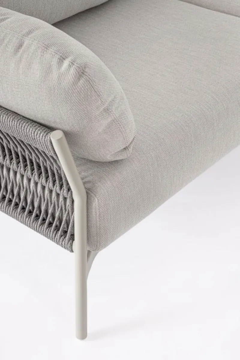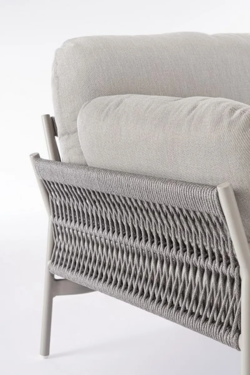 STRUTTURA IN ALLUMINIO VERNICIATO A POLVERE (POLIESTERE). INTRECCIO IN CORDA OLEFIN (100% POLIPROPILENE). CUSCINI SEDUTA E SCHIENALE SFODERABILI IN TESSUTO IDROREPELLENTE OLEFIN (100% POLIPROPILENE).