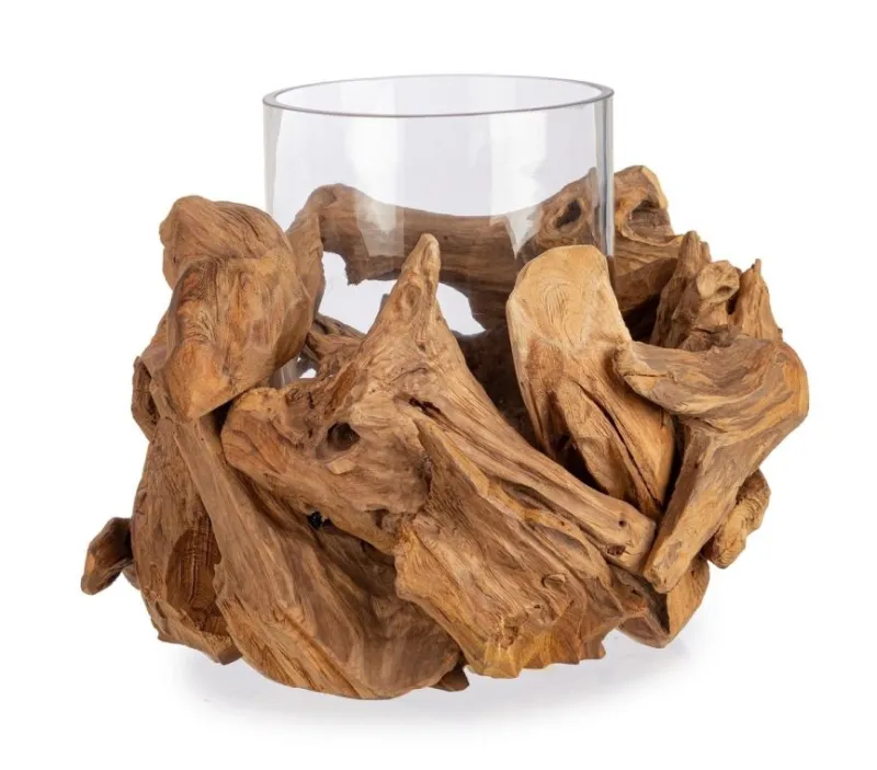 VETRO E RADICI DI LEGNO TEAK RECICLATO, FINITURA NATURALE. LE FORME ORIGINALI CREATE DAL LEGNO SONO SOLO INDICATIVE, TUTTI I PRODOTTI SARANNO DIVERSI L’UNO DALL’ALTRO.