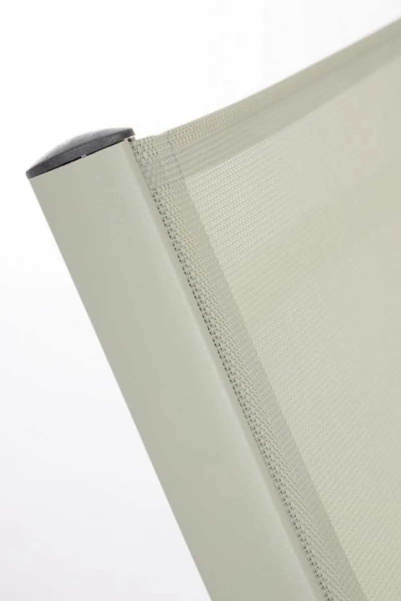 STRUTTURA IN ALLUMINIO, VERNICIATO A POLVERE (POLIESTERE). SEDUTA E SCHIENALE IN TEXTILENE 2X1 (610G/M2). FERRAMENTA IN ACCIAIO INOSSIDABILE. SCHIENALE RECLINABILE (QUATTRO POSIZIONI).