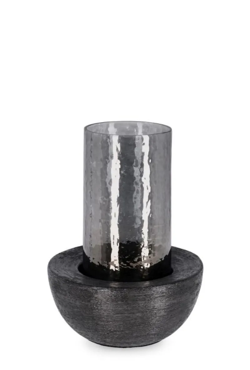 METALLO LAVORATO ARTIGIANALMENTE, FINITURA NERO SPAZZOLATO, VETRO. SOLO PER USO DECORATIVO. PRODOTTO FATTO A MANO. EVENTUALI VARIAZIONI DI COLORE, TONALITÀ O IMPERFEZIONI SONO DA CONSIDERARSI UNA CARATTERISTICA DI UNICITÀ.