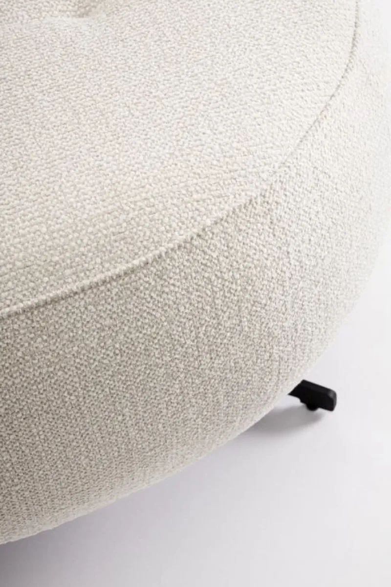 STRUTTURA IN COMPENSATO ED ACCIAIO RIVESTITA IN POLIESTERE EFFETTO CINIGLIA . BASE DIAM 795 MM CON GAMBE IN ACCIAIO VERNICIATO A POLVERE E SEDUTA GIREVOLE 360° IMBOTTITURA IN SCHIUMA POLIURETANICA DENSITA’ 20-29 KG/M3. DA ASSEMBLARE.