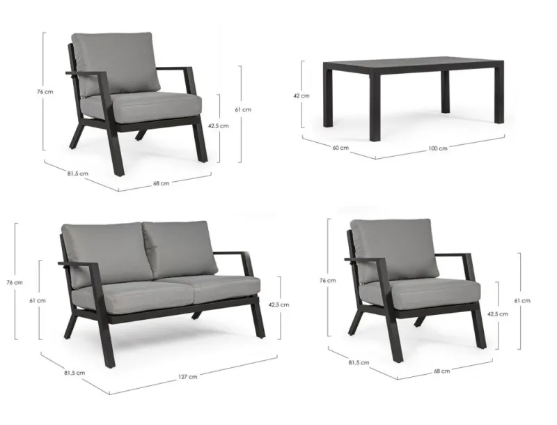Clearance Bizzotto SALOTTO IN ALLUMINIO ANTRACITE YK13 – HARLEY