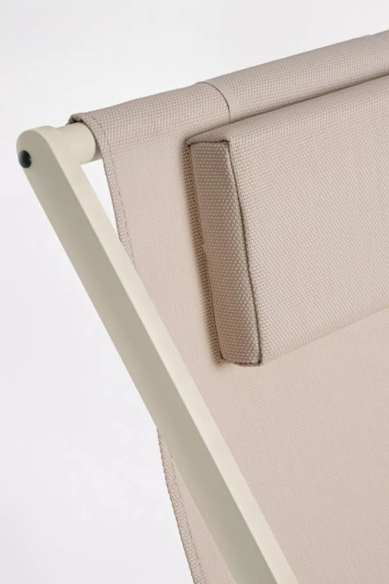 STRUTTURA IN ALLUMINIO, VERNICIATO A POLVERE (POLIESTERE). SEDUTA E SCHIENALE IN TEXTILENE 2X1 (610G/M2). FERRAMENTA IN ACCIAIO GALVANIZZATO. TRE POSIZIONI.
