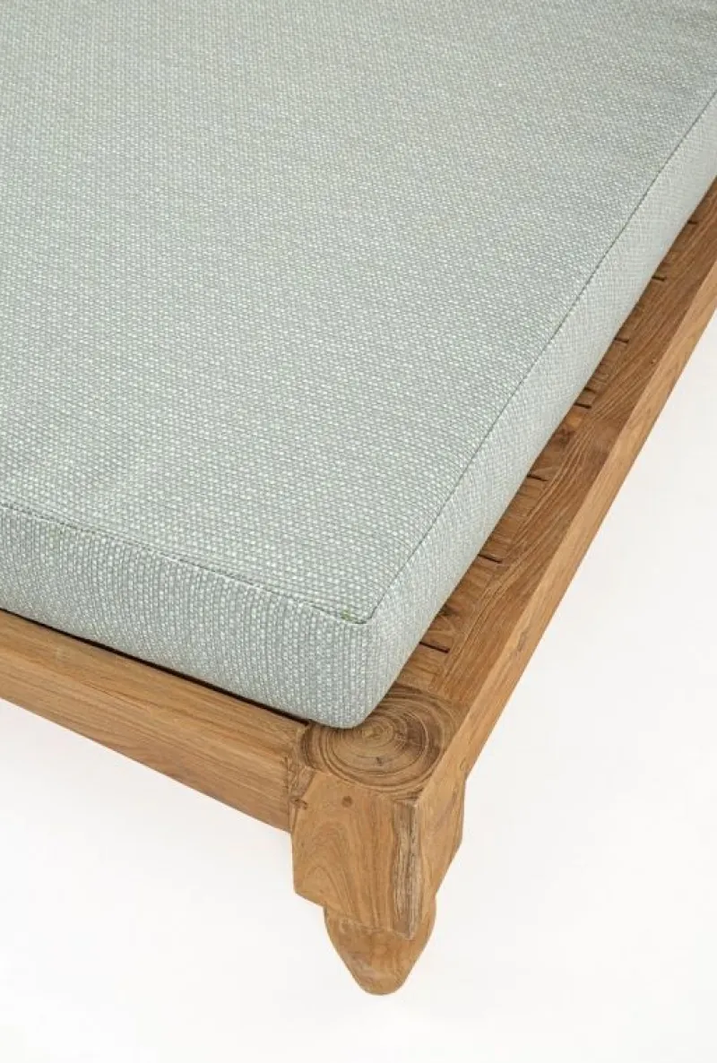LEGNO TEAK FSC 100%, FINITURA SABBIATA ED ANTICATA A BASE D’ACQUA. CUSCINI SFODERABILI IN TESSUTO IDROREPELLENTE SUNPROOF OLEFIN (100% POLIPROPILENE). SI RACCOMANDA DI NON ESPORRE L’ARTICOLO ALLA LUCE DIRETTA DEL SOLE ED ALLE INTEMPERIE. QUESTO PRODOTTO È CARATTERIZZATO DALLA PRESENZA DI TASSELLI IN LEGNO DELLA STESSA NATURA. EVENTUALI FESSURE, CREPE O IMPERFEZIONI,