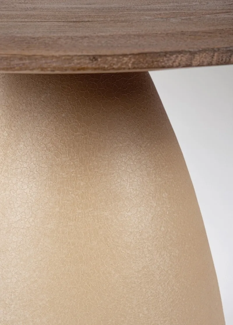TOP IN LEGNO DI MANGO CON FORMA IRREGOLARE,CON VERNICIATURA A BASE D’ACQUA E FINITURA FINALE A BASE DI NITROCELLULOSA. BASE IN ACCIAIO VERNICIATO A POLVERE EPOSSIDICA EFFETTO MATERICO.BASE DA ASSEMBLARE