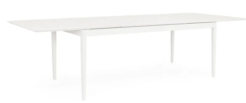 STRUTTURA IN ALLUMINIO VERNICIATO A POLVERE (POLIESTERE). ALLUNGABILE CON PROLUNGA AUTOMATICA (CHIUSURA A FARFALLA). VITERIA IN ACCIAIO INOSSIDABILE. PIEDINI REGOLABILI. GAMBE DA ASSEMBLARE.