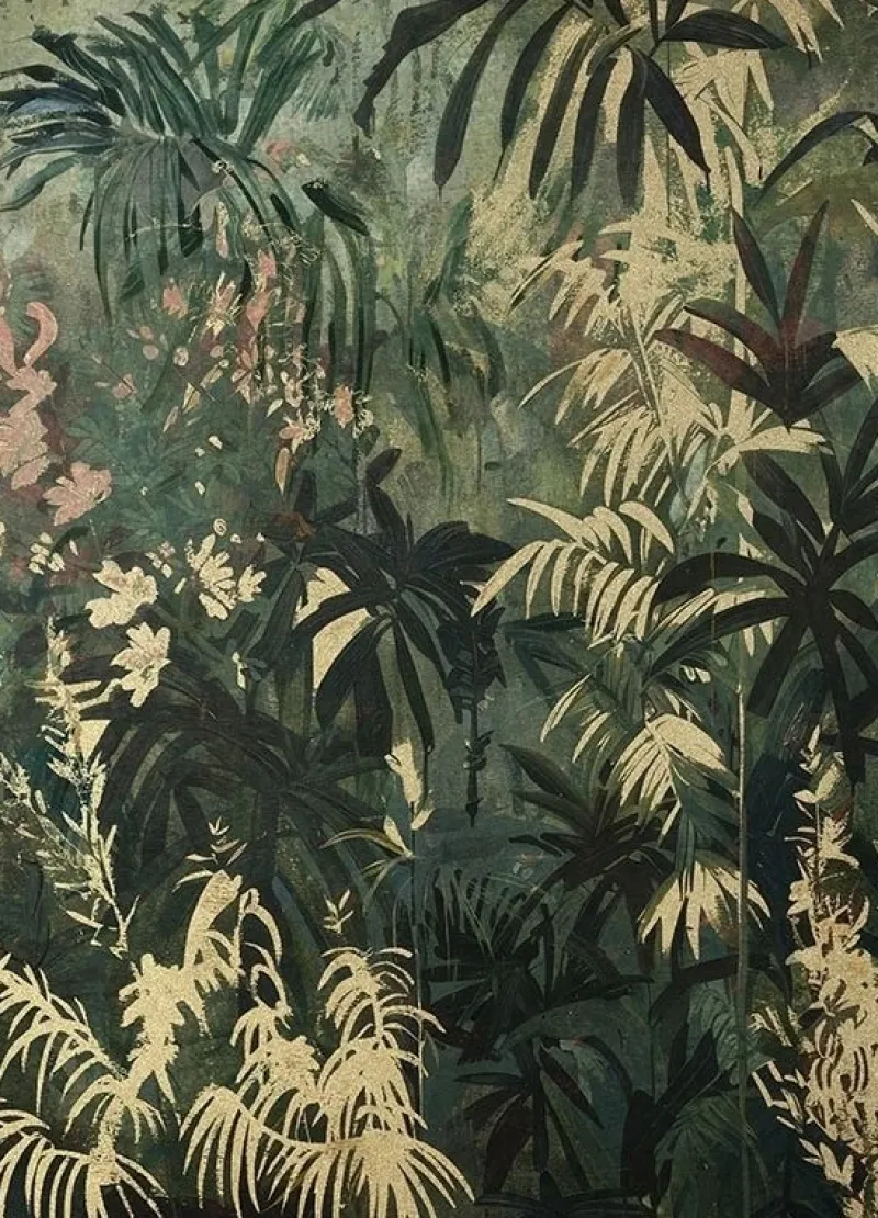 STAMPA SU TELA CON APPLICAZIONI FOGLI DORATI. CORNICE IN PLASTICA. TELAIO IN LEGNO.