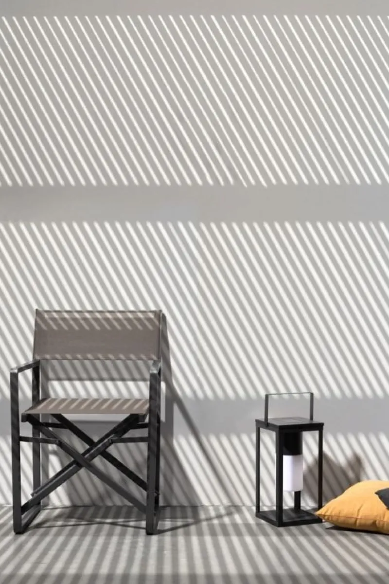 STRUTTURA IN ALLUMINIO, VERNICIATO A POLVERE (POLIESTERE). SEDUTA E SCHIENALE IN TEXTILENE 1X1. VITERIA IN ACCIAIO INOSSIDABILE. PIEGHEVOLE.