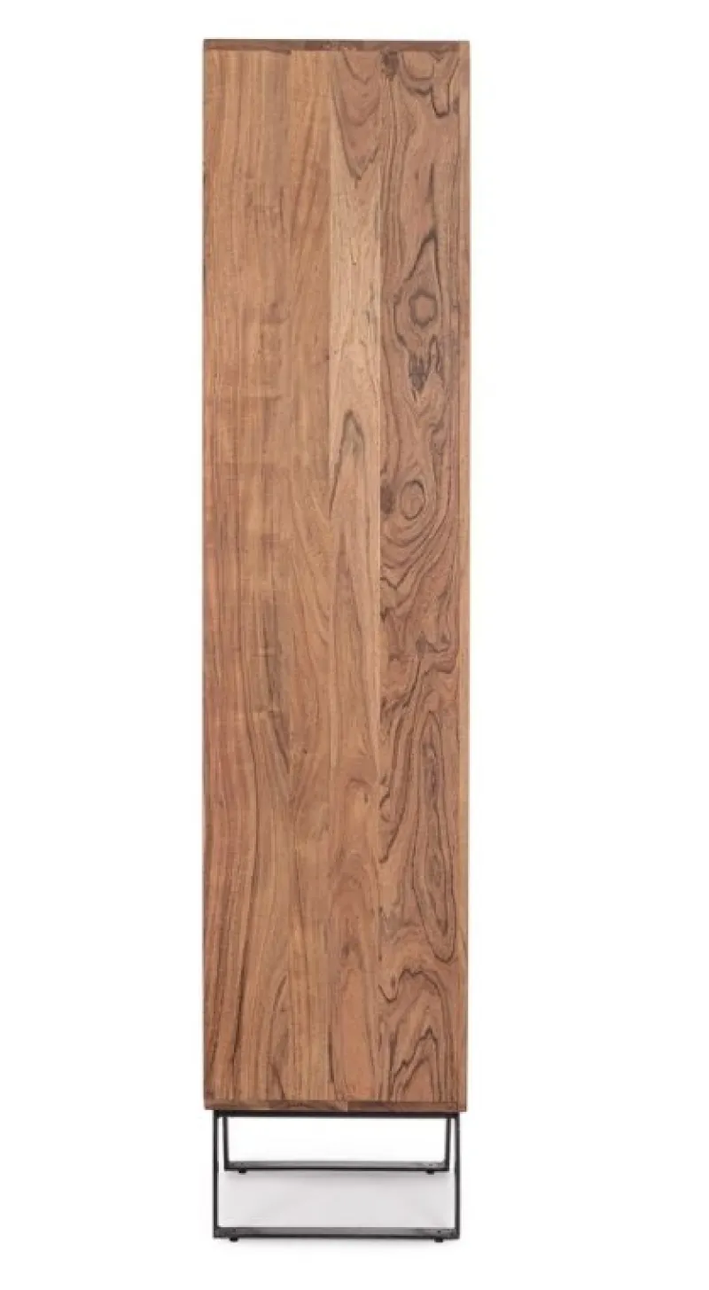 STRUTTURA IN LEGNO DI ACACIA, SCHIENALI E FONDO CASSETTI IN COMPENSATO. FRONTALI ANTE E CASSETTI INTARSIATI E LAVORATI A MANO. FINITURA ACRILICA PROTETTIVA. MANIGLIE E GAMBE IN ACCIAIO. GAMBE DA ASSEMBLARE.