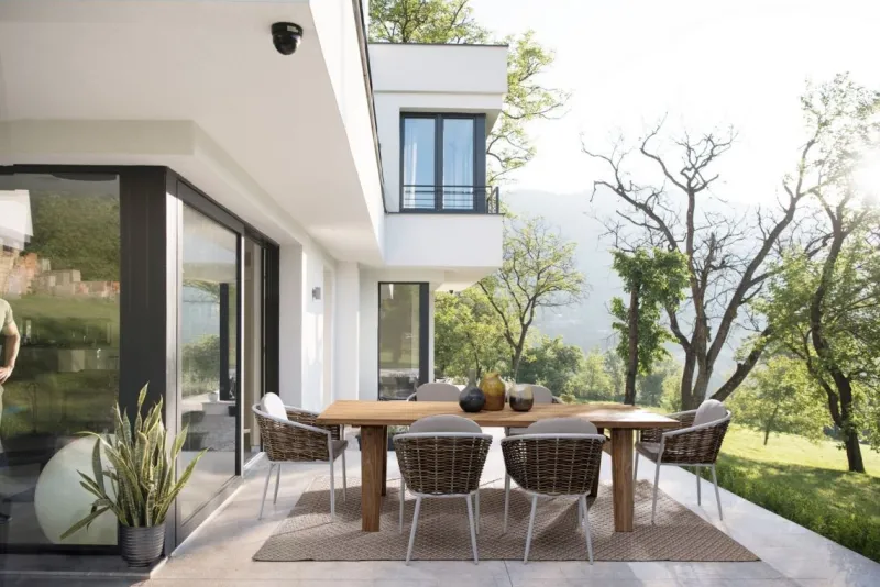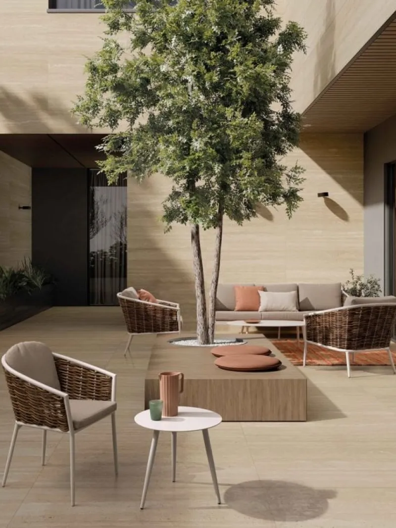 STRUTTURA E GAMBE IN ALLUMINIO VERNICIATE A POLVERE (POLIESTERE). SEDUTA RIVESTITA IN FIBRA SINTETICA (TONDA 9MM). CUSCINI SEDUTA E SCHIENALE SFODERABILI CON TESSUTO IDROREPELLENTE OLEFIN (100% POLIPROPILENE). IMPILABILE.