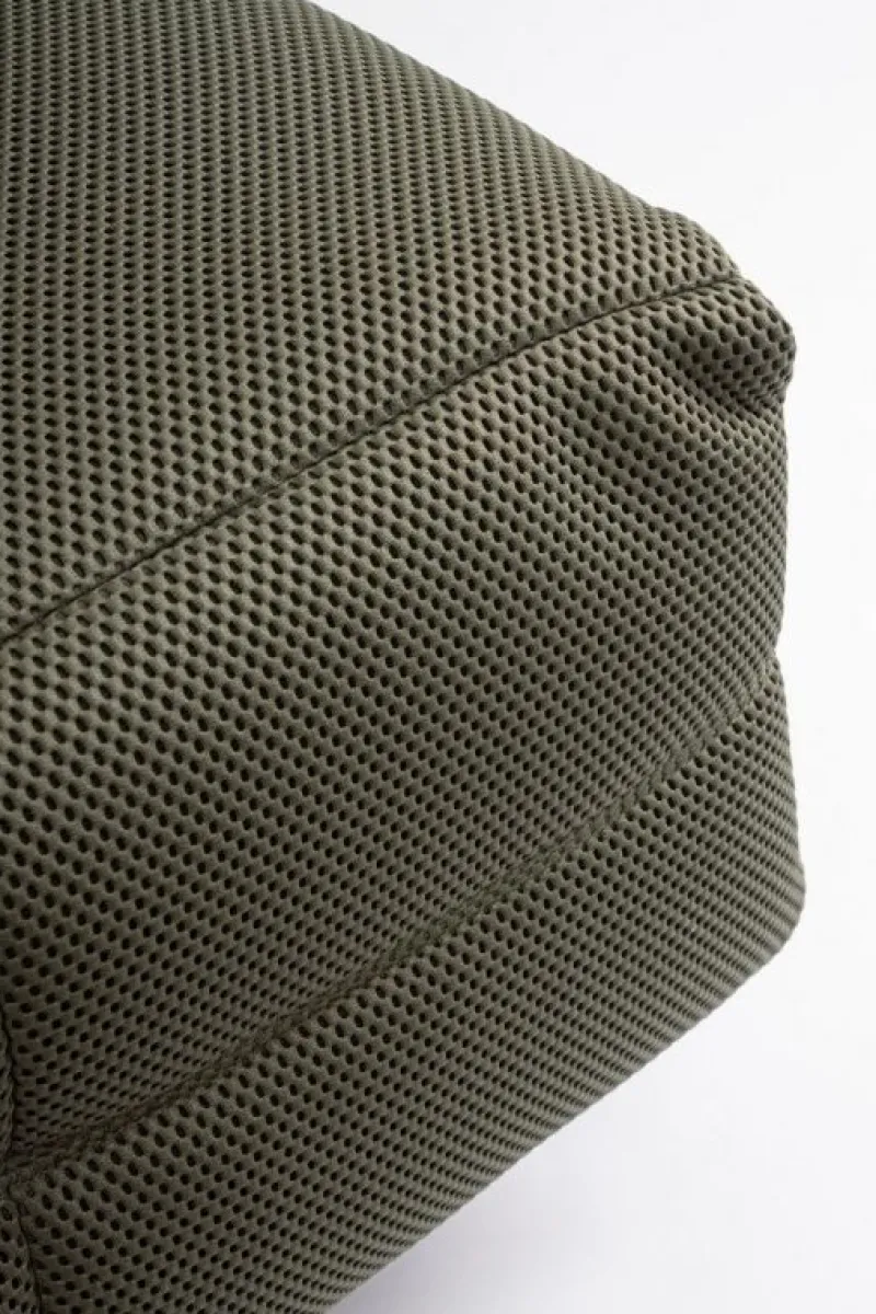 STRUTTURA IN COMPENSATO ED ACCIAIO. RIVESTIMENTO IN POLIESTERE EFFETTO TESSUTO TECHNO 3D . IMBOTTITURA IN SCHIUMA POLIURETANICA DENSITA’ 20-24 KG/M3. RECLINABILE PARTE POGGIAPIEDI.
