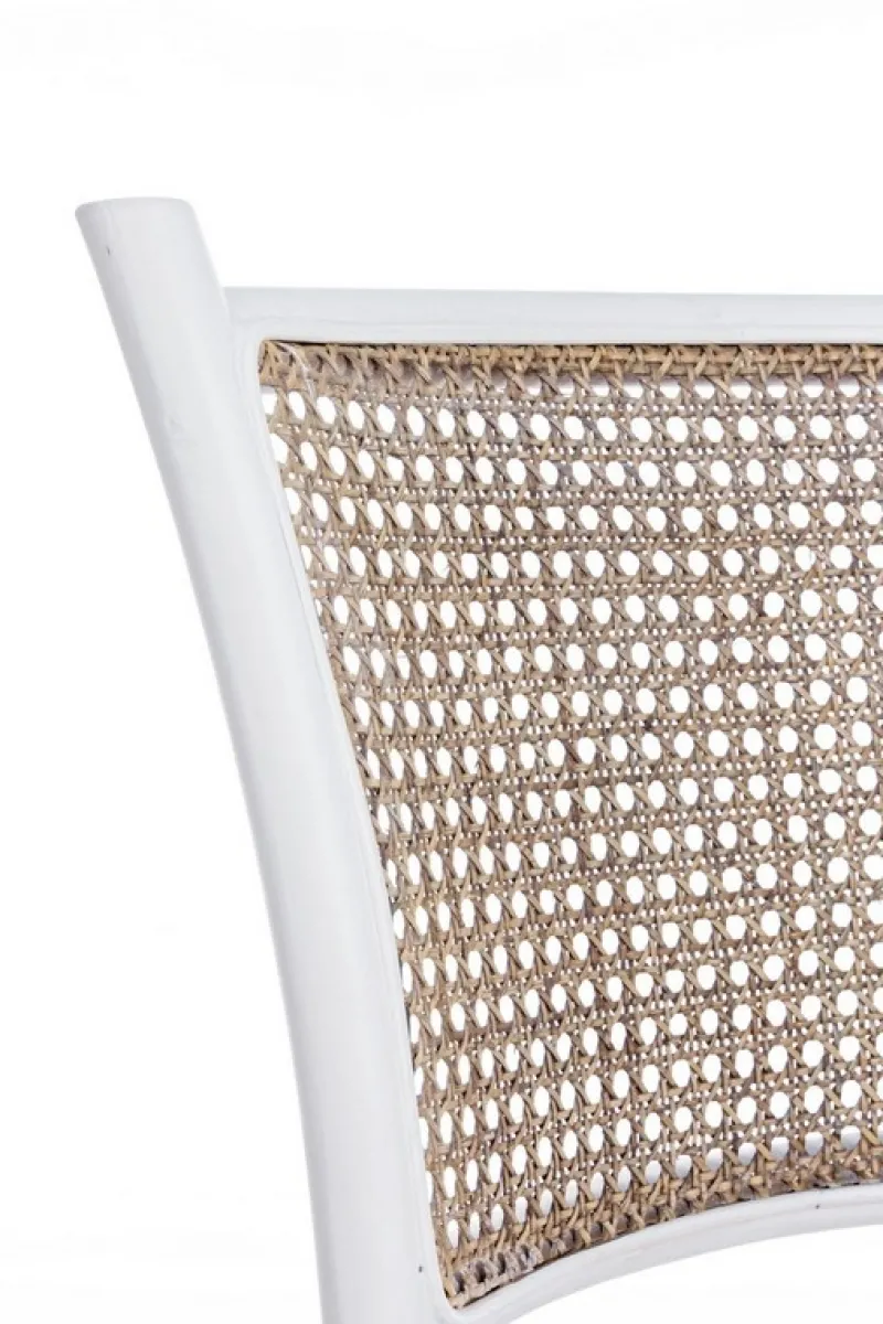 STRUTTURA IN LEGNO DI OLMO, SCHIENALE E SEDUTA IMBOTTITA RIVESTITE IN RATTAN NATURALE, FINITURA POLIURETANICA. IMBALLO SENZA CARTONE.