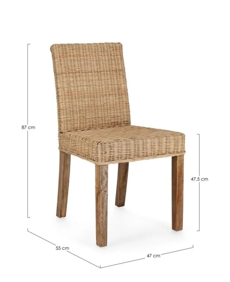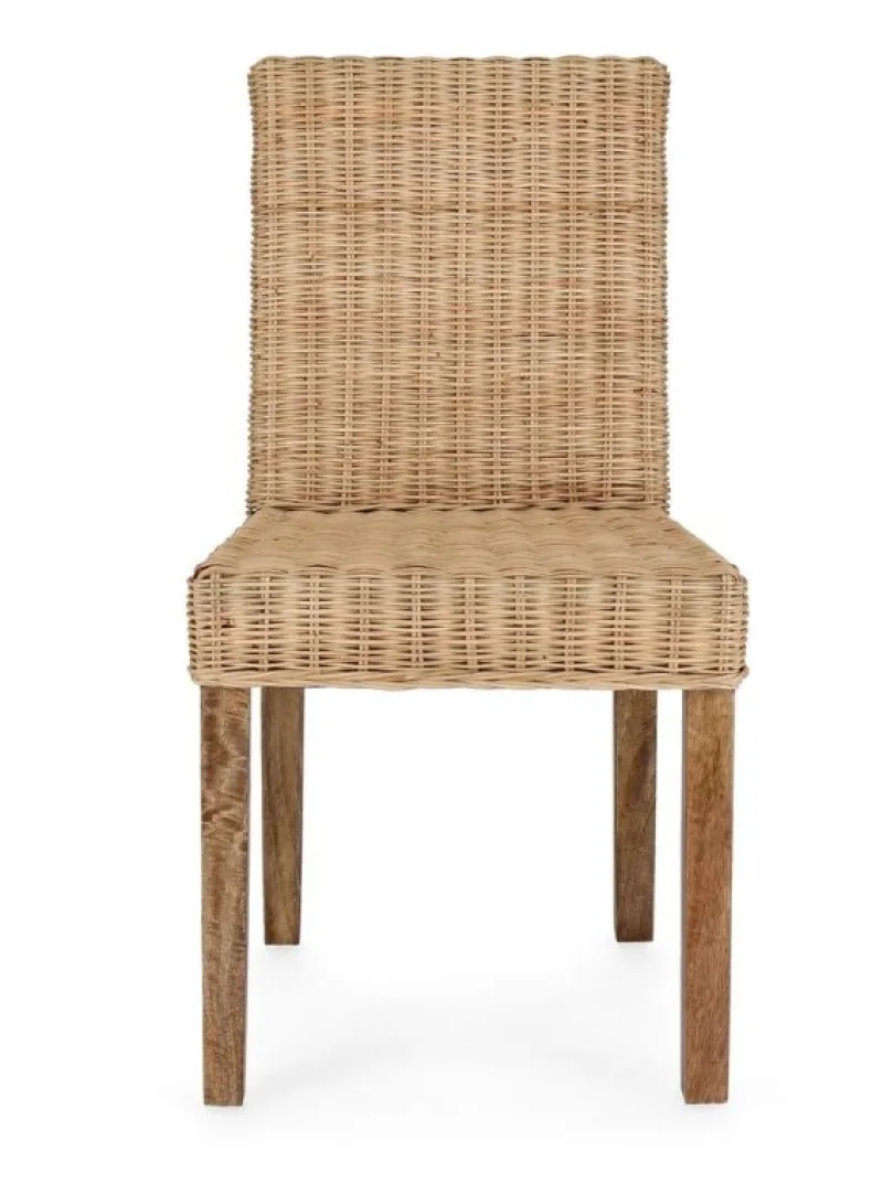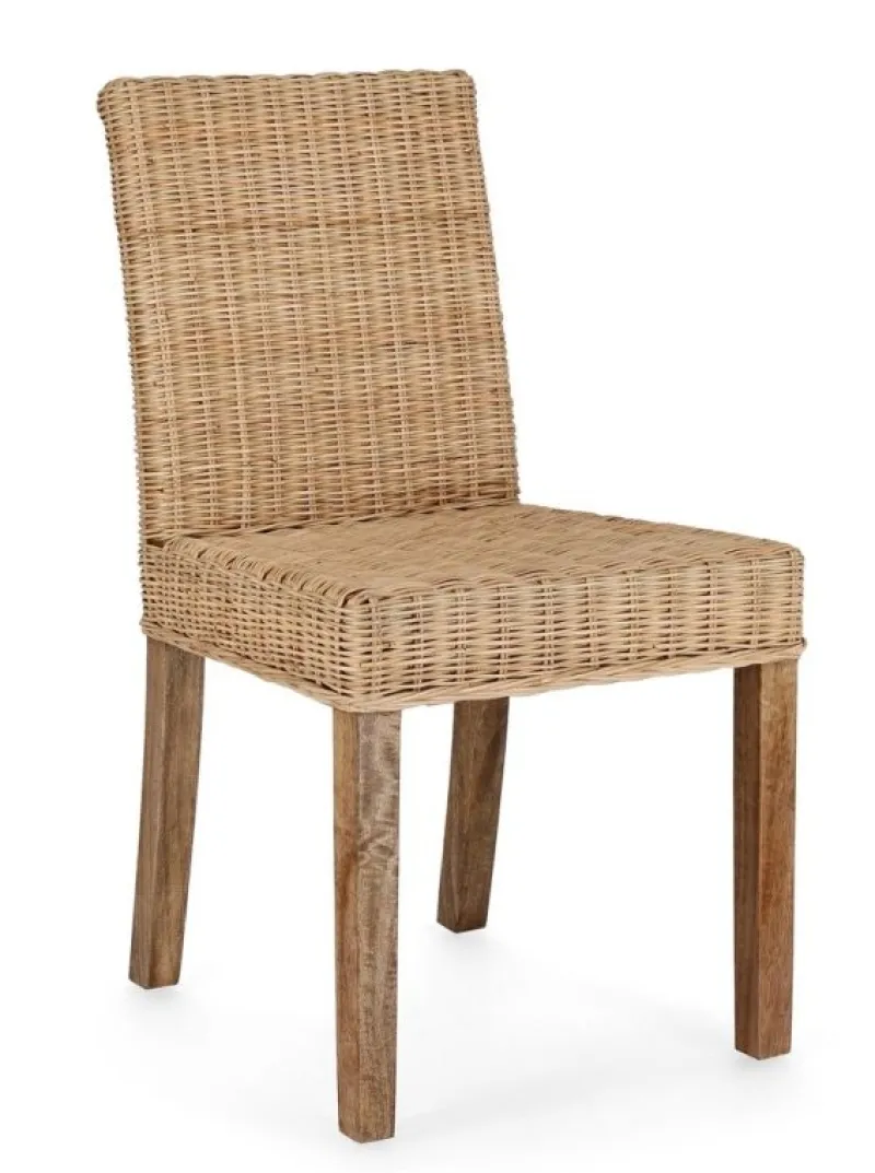 STRUTTURA IN LEGNO DI MANGO, INTRECCIO IN RATTAN. FINITURA A BASE DI NITROCELLULOSA. SOLO PER USO INTERNO. IMBALLO SENZA CARTONE.