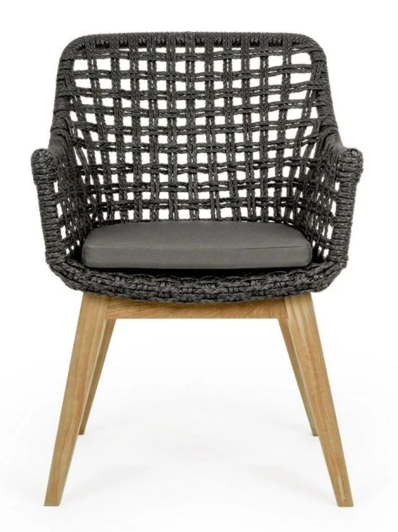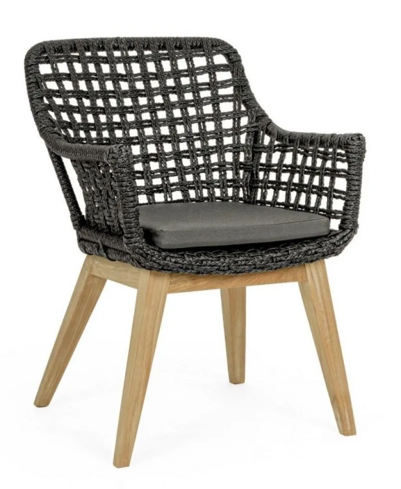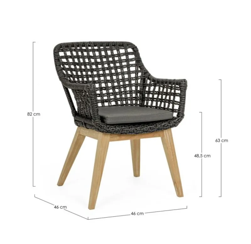 SEDUTA CON STRUTTURA IN ALLUMINIO VERNICIATA A POLVERE (POLIESTERE). INTRECCIO IN FIBRA SINTETICA VIRO CON ORIGINALE PIEGATURA A TRECCIA (EFFETTO PELLE). CUSCINO SEDUTA SFODERABILE IN TESSUTO IDROREPELLENTE SUNPROOF OLEFIN (100% POLIPROPILENE). GAMBE IN TEAK – SVLK (LEGNO CERTIFICATO PROVENIENTE DA FORESTE SOSTENIBILI). VITERIA IN ACCIAIO GALVANIZZATO. GAMBE DA ASSEMBLARE. ATTENZIONE: PRIMA DI PROCEDERE AL MONTAGGIO, ASSICURARSI CHE LA NUMERAZIONE SEDUTA-GAMBE COINCIDA.