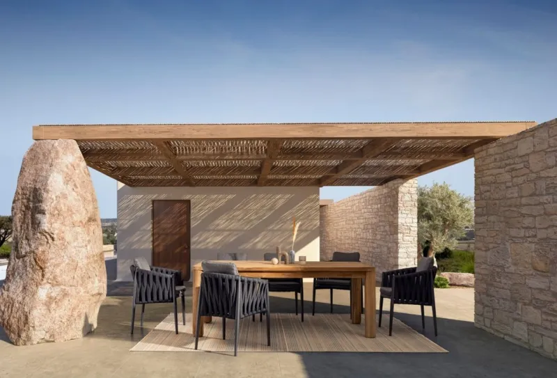PIANO E GAMBE IN LEGNO TEAK RICICLATO – SVLK (LEGNO CERTIFICATO PROVENIENTE DA FORESTE SOSTENIBILI). FINITURA NATURALE SPAZZOLATA. VITERIA IN ACCIAIO INOSSIDABILE. IL PRODOTTO IN LEGNO RICICLATO È CARATTERIZZATO DALLA PRESENZA DI TASSELLI IN LEGNO DI DIVERSE SPECIE E COLORE. EVENTUALI FESSURE, CREPE O IMPERFEZIONI, CHE POSSONO
